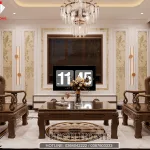 Sự lựa chọn vật liệu kỹ lưỡng này là nền tảng vững chắc, giúp công trình Nội thất Tân Cổ Điển không chỉ đẹp mà còn giữ được giá trị qua nhiều năm.