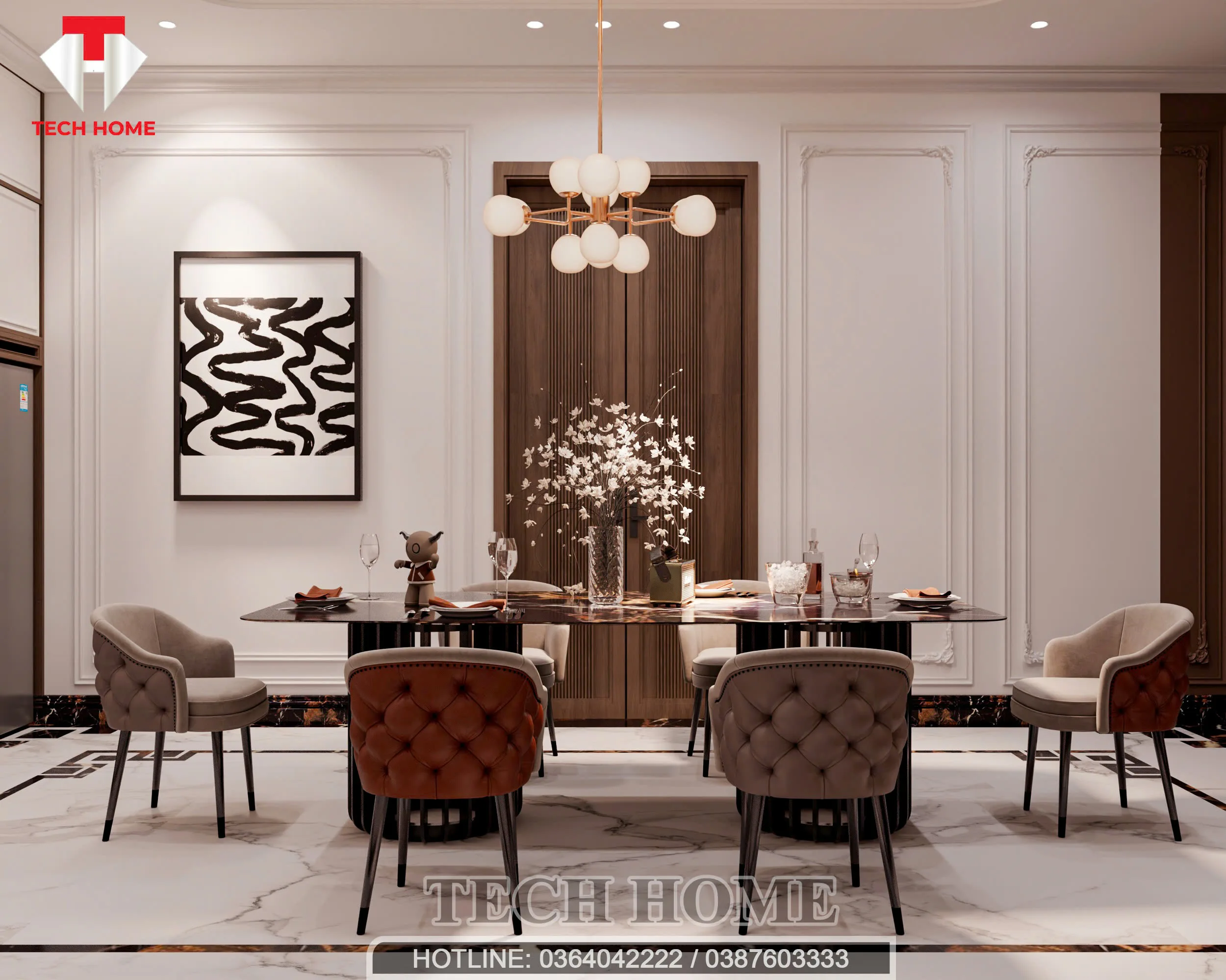- Thiết Kế Độc Quyền, Cá Nhân Hóa: Techhome không sao chép mà tạo ra những mẫu thiết kế Nội thất Tân Cổ Điển độc đáo, phản ánh đúng sở thích và phong cách sống của từng gia chủ.