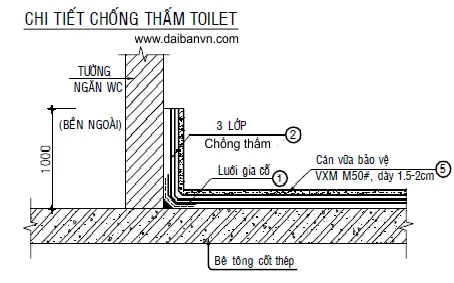 • WC: vữa tinh thể/flexible + băng chống nứt góc; test ngâm trước khi lát gạch.