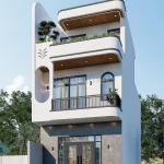 Ngay từ cái nhìn đầu tiên vào phối cảnh 3D, bạn sẽ thấy ngôi nhà này không hề bị “cứng” như những khối nhà ống thông thường. Đây là một mẫu nhà 2 tầng 1 tum đẹp đại diện cho tư duy thiết kế mới: hiện đại nhưng phải có cảm xúc.