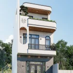 Về tỷ lệ hình khối, mẫu nhà 2 tầng 1 tum đẹp thường có tỷ lệ chiều cao và chiều rộng rất hài hòa (với mặt tiền 5-6m). Nó không quá cao lênh khênh như nhà ống 4-5 tầng, tạo cảm giác vững chãi và gần gũi.