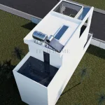Nhìn vào phối cảnh 3D, bạn sẽ bị thu hút ngay bởi những đường bo cong mềm mại ở ban công tầng 2 và hệ lam mái che tầng tum. Đây chính là xu hướng Kiến trúc mềm đang làm mưa làm gió năm 2025. Nó làm cho mẫu nhà ống 2 tầng 1 tum trở nên duyên dáng hơn, bớt đi vẻ thô cứng của bê tông cốt thép.