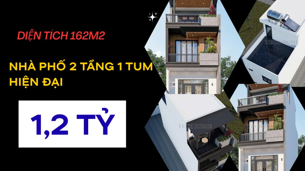 Xây nhà 2 tầng 1 tum hết bao nhiêu tiền? Tùy vào diện tích, nhưng thông thường gói hoàn thiện cho Mẫu nhà phố 2 tầng 1 tum hiện đại 162m2 dao động từ 1 tỷ đến 1,2 tỷ đồng.