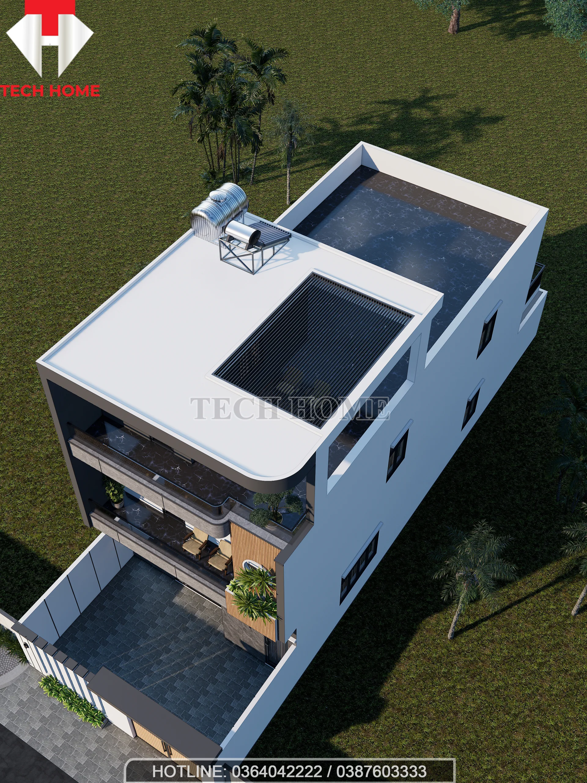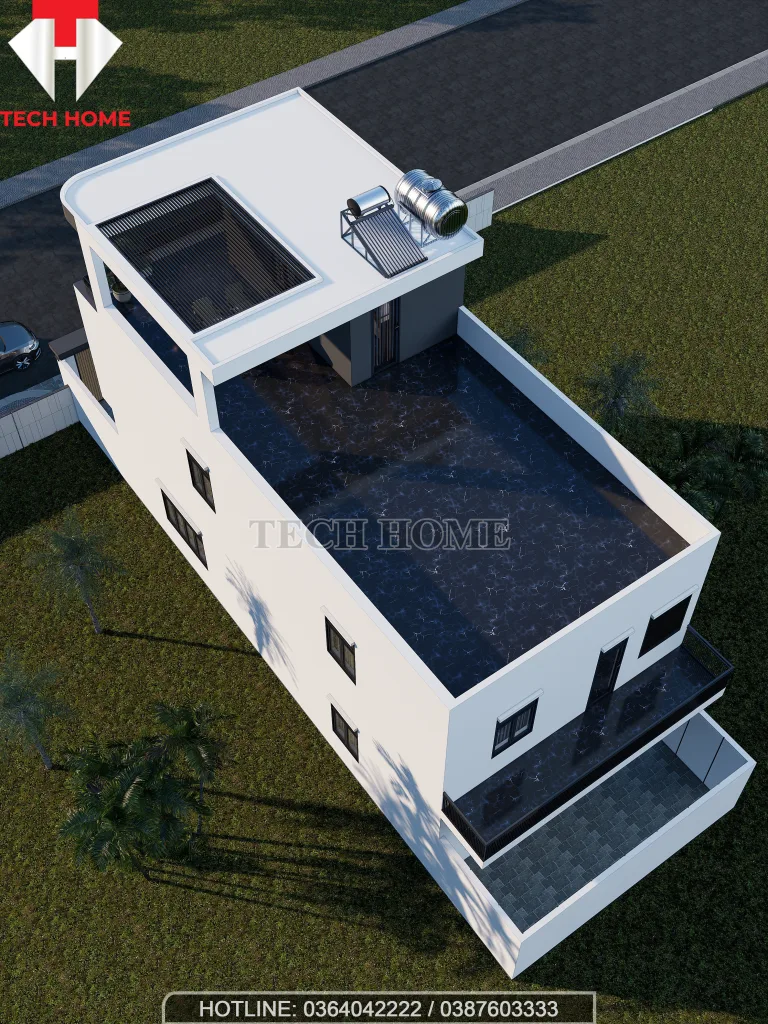 Tuy nhiên, với kinh nghiệm của Techhome, mô hình nhà 2 tầng 1 tum là giải pháp kinh tế nhất. Bạn tiết kiệm được chi phí đổ trần bê tông cho toàn bộ tầng 3, giảm tải trọng lên móng, và thời gian thi công cũng nhanh hơn.