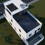 Mặc dù chúng ta đang xem bản vẽ , nhưng qua các mặt đứng, có thể thấy rõ tinh thần của một mẫu nhà phố 2 tầng 1 tum hiện đại. Các đường nét kiến trúc gãy gọn, vuông vức, không có các chi tiết phào chỉ rườm rà kiểu cổ điển. Sự hiện đại thể hiện ở việc sử dụng các mảng khối đua ra thụt vào hợp lý để chắn nắng và tạo điểm nhấn.