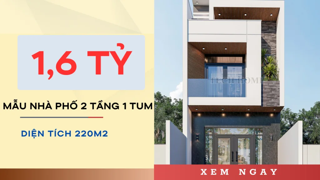 Lưu ý: Tổng diện tích sàn cho mẫu nhà phố 2 tầng 1 tum này khoảng 220 m2 (tính cả mái và tum). Tổng đầu tư dự kiến rơi vào khoảng 1,4 – 1,7 tỷ đồng tùy vào mức độ cao cấp của vật liệu hoàn thiện. Để tìm hiểu rõ hơn về tiêu chuẩn vật liệu xây dựng và các yếu tố ảnh hưởng đến chi phí, bạn có thể tham khảo thêm tại các bài viết chuyên sâu về vật liệu xây dựng cao cấp trên Wikipedia.