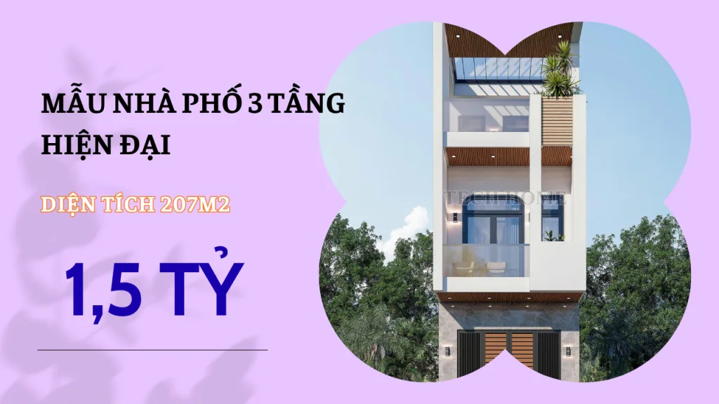 Thấu hiểu điều đó, các kiến trúc sư tại Techhome đã phác thảo nên mẫu nhà phố 3 tầng hiện đại với phong cách tối giản nhưng cực kỳ tinh tế. Tổng diện tích thiết kế lên tới 207m2, đảm bảo đầy đủ công năng cho một gia đình đa thế hệ.