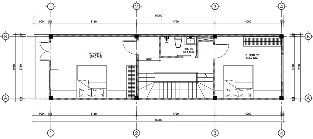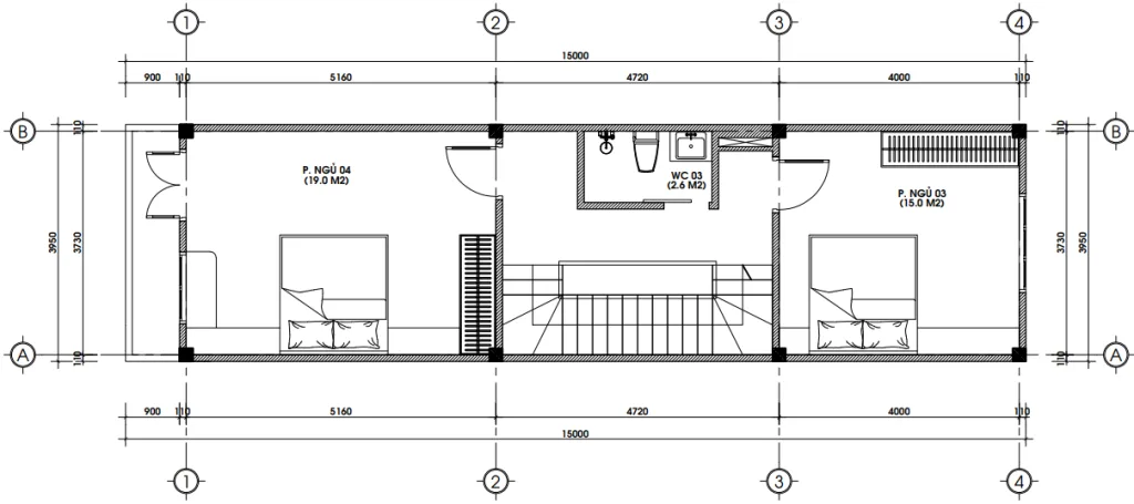 • Phòng ngủ 02 & 03 (15.0m²): Nằm phía sau, yên tĩnh, phù hợp cho con cái hoặc khách đến chơi nhà.