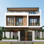 • Phong cách: Thiết kế nhà 3 tầng hiện đại, mái bằng, không gian mở.