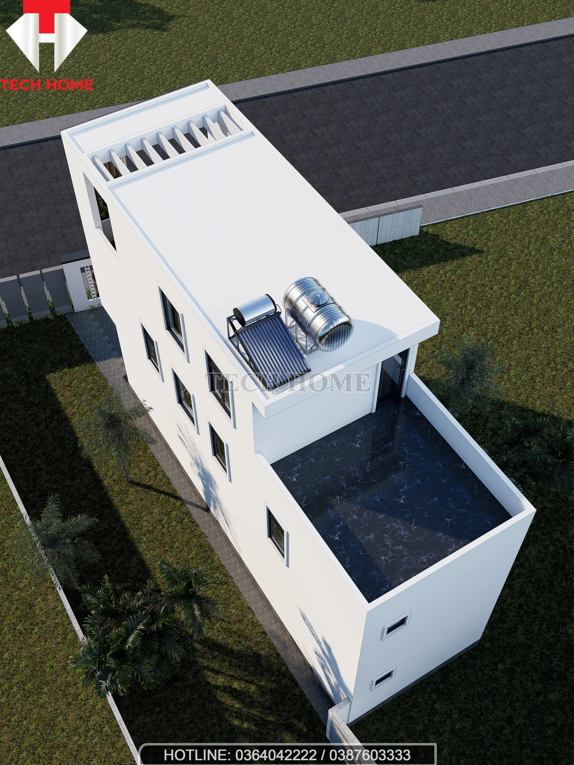Chú trọng chống thấm: Tầng tum và sân thượng là nơi tiếp xúc trực tiếp với mưa nắng. Bản vẽ lát sàn tầng tum của TechHome đã chỉ rõ độ dốc về phễu thu sàn, đây là điều bắt buộc phải giám sát kỹ khi thi công.