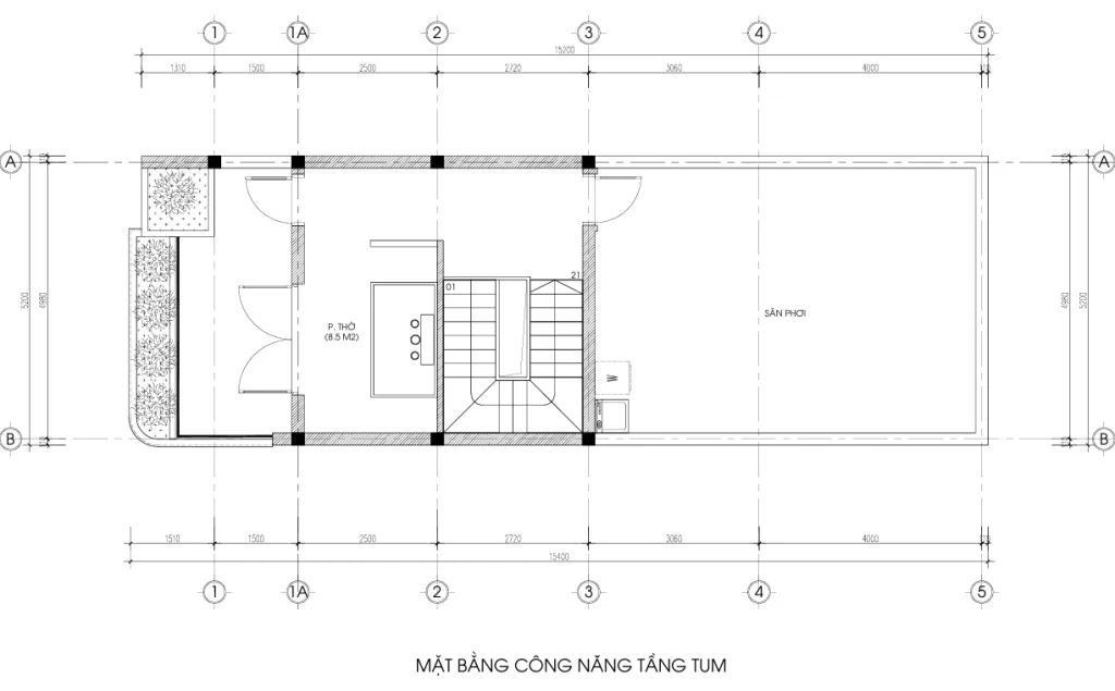• Tầng Tum: Phòng thờ, Sân phơi.