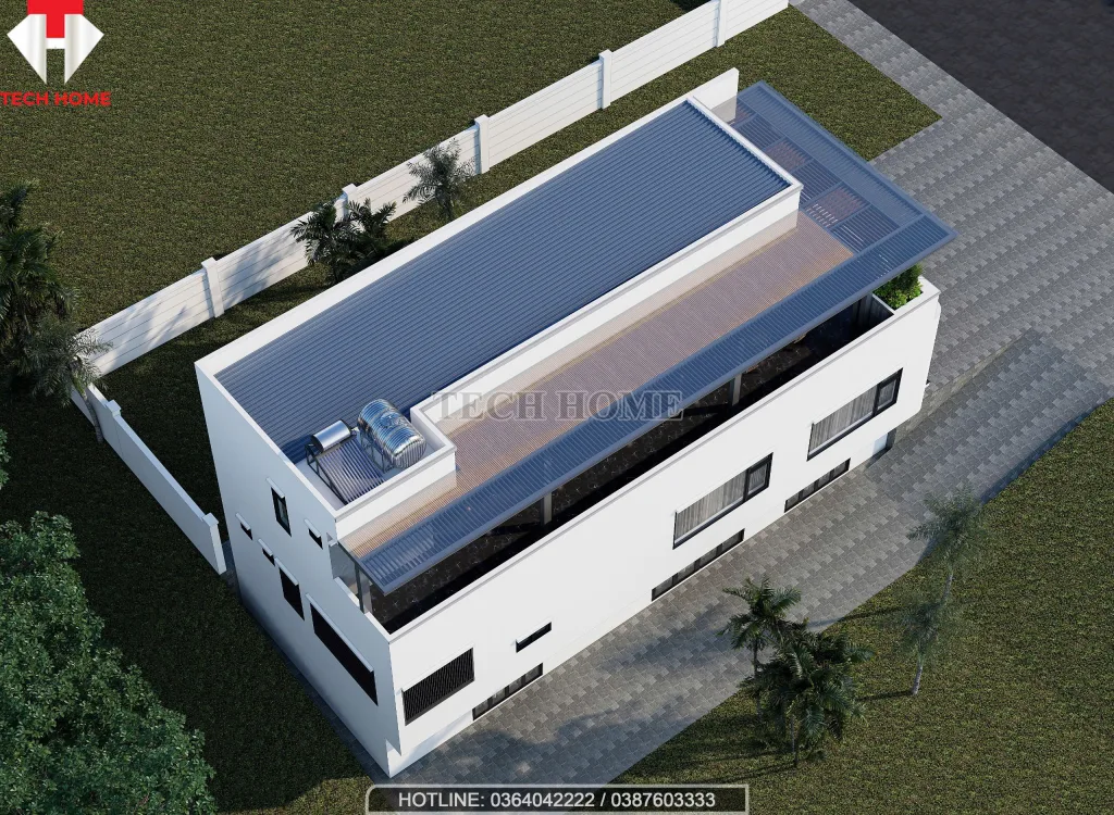 📸 Hình ảnh thực tế – Mẫu nhà 2 tầng mái bằng hiện đại Techhome