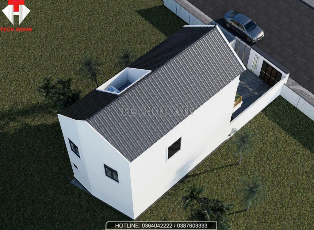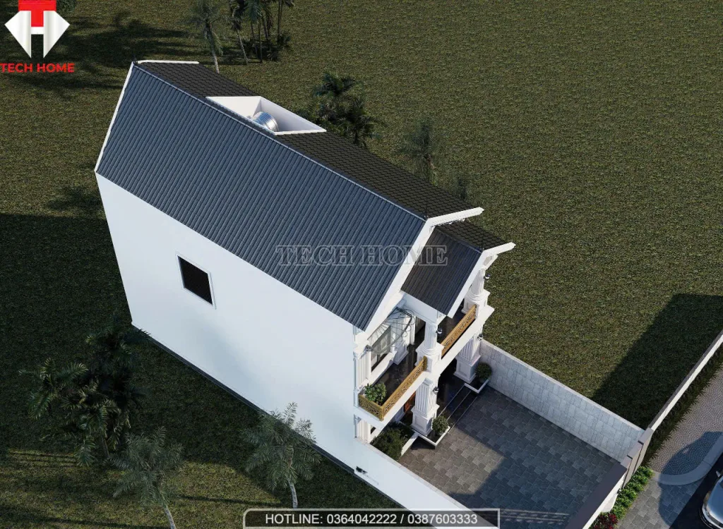 Điểm nhấn đặc trưng của nhà mái Thái 2 tầng chính là phần mái dốc thoải, tạo hình khối cân đối và thanh thoát. Phần mái thường được lợp ngói thái cao cấp, không chỉ mang tính thẩm mỹ cao mà còn giúp chống nóng, thoát nước mưa nhanh chóng – phù hợp với khí hậu nhiệt đới gió mùa tại Việt Nam.