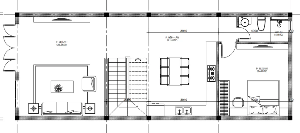 4. Tối ưu diện tích: Bố trí không gian linh hoạt, phù hợp lô đất phố.