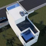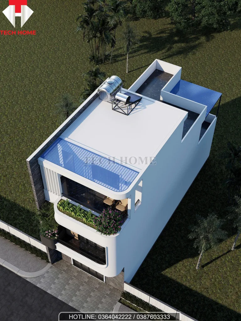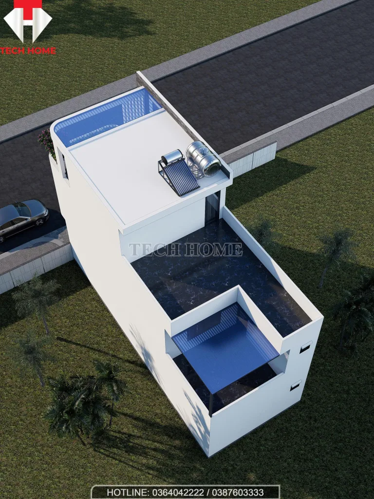 Điểm cộng đặc biệt của mẫu nhà phố 2 tầng 1 tum hiện đại này chính là tận dụng mái bằng làm: