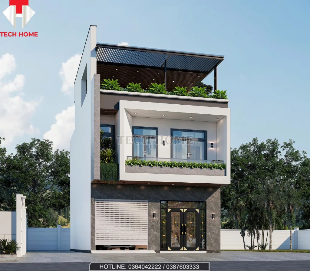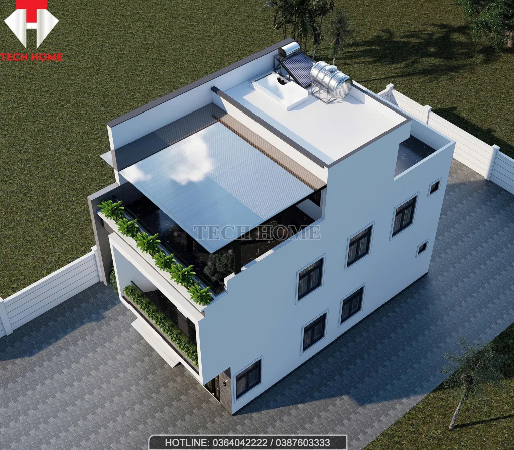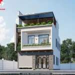 1. Phối cảnh tổng thể – Nhà phố 2 tầng mái bằng hiện đại, sang trọng