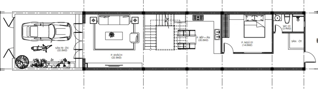 Công năng tối ưu: Diện tích được tận dụng tối đa, phù hợp với gia đình có 4 – 5 thành viên.