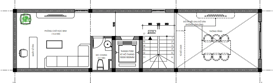 • Tầng 5: Phòng sinh hoạt chung, phòng học hoặc không gian làm việc.