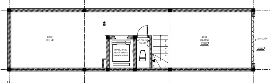 • Tầng 1: Gara ô tô, khu để xe máy, sảnh tiếp đón.
