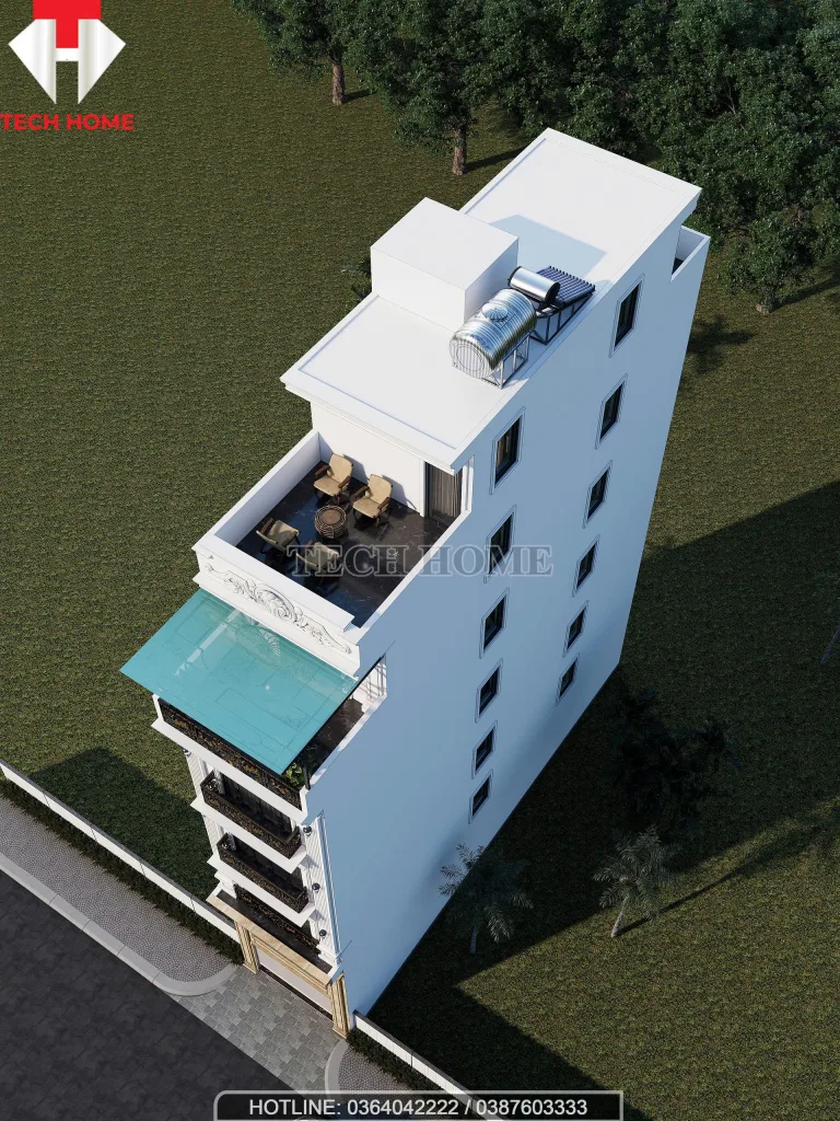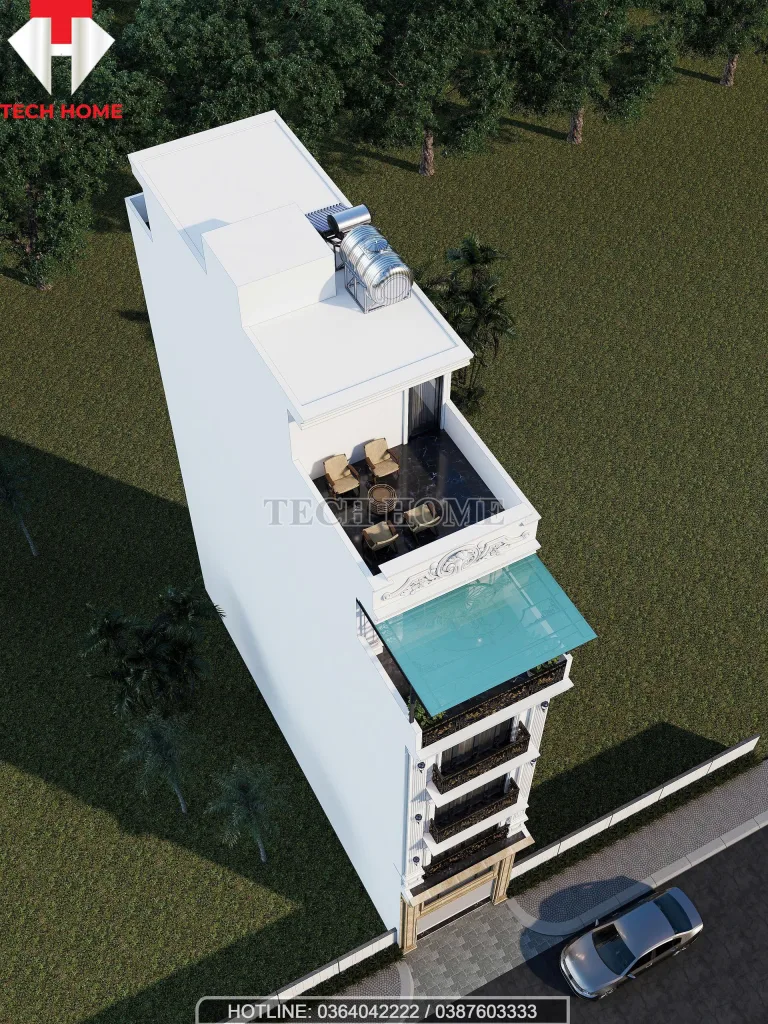 7. Techhome – Đơn vị thiết kế và thi công trọn gói nhà phố 5 tầng 1 tum mái bằng