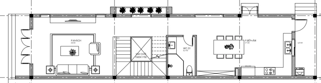 • Tầng 1: Phòng khách rộng mở liên thông bếp – ăn, 1 WC chung, có thể tích hợp gara ô tô.