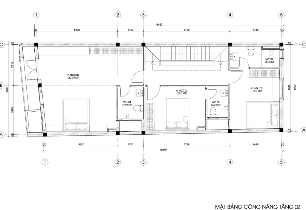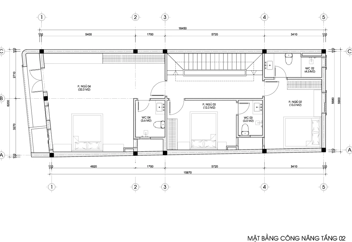 Khu vực tầng 2 tập trung hoàn toàn cho việc nghỉ ngơi với 03 phòng ngủ: