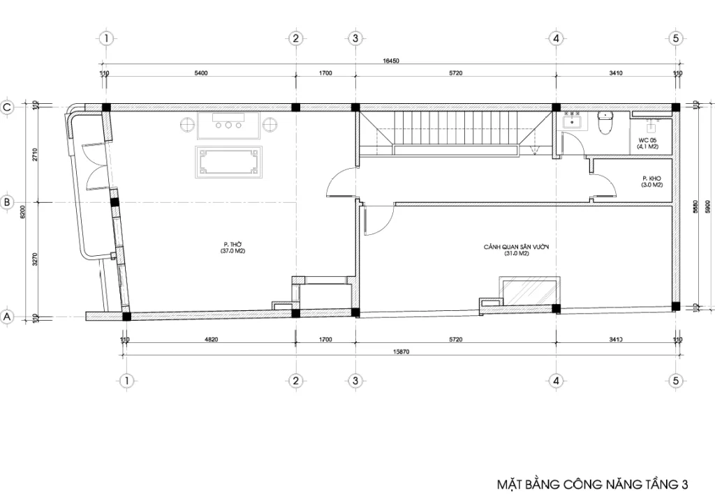 Phòng thờ (37m2): Không gian thờ cúng tổ tiên vô cùng rộng lớn và trang nghiêm, đặt tại vị trí phong thủy đẹp nhất phía trước nhà.