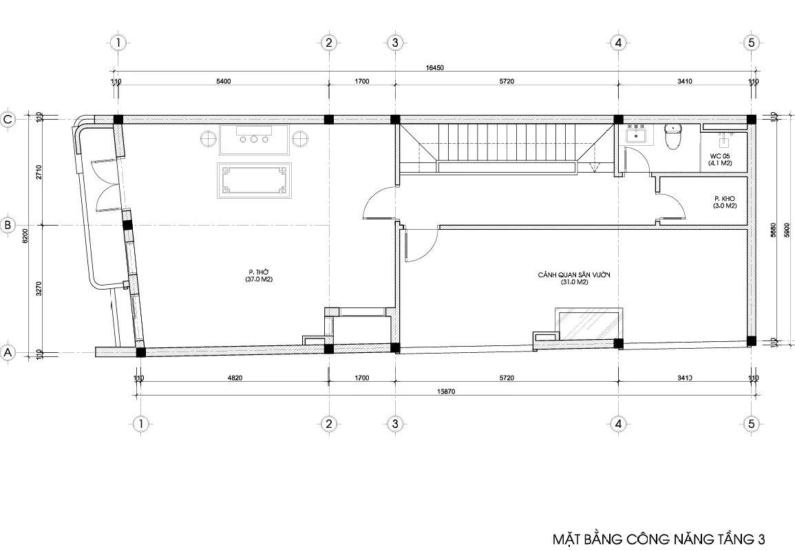 Đây là tầng chức năng đặc biệt của mẫu nhà phố 3 tầng hiện đại này: