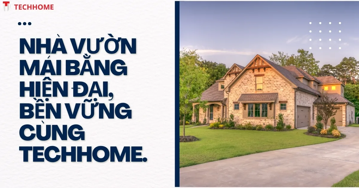 Mẫu nhà vườn mái bằng 1 tầng – Xu hướng hiện đại & bền vững từ Techhome