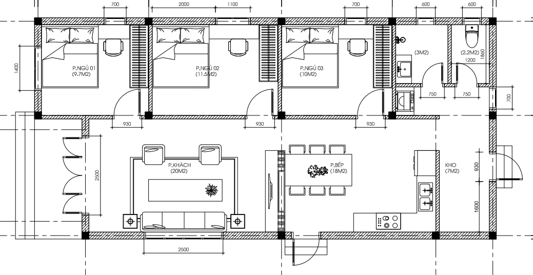 Dễ mở rộng trong tương lai: Nếu có nhu cầu, gia đình có thể xây chồng tầng mà không ảnh hưởng đến kết cấu.