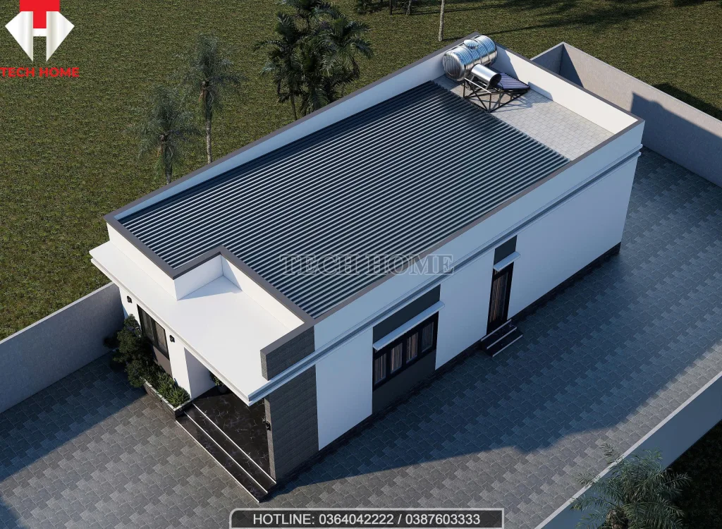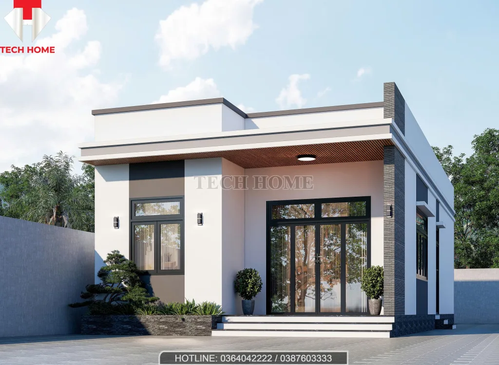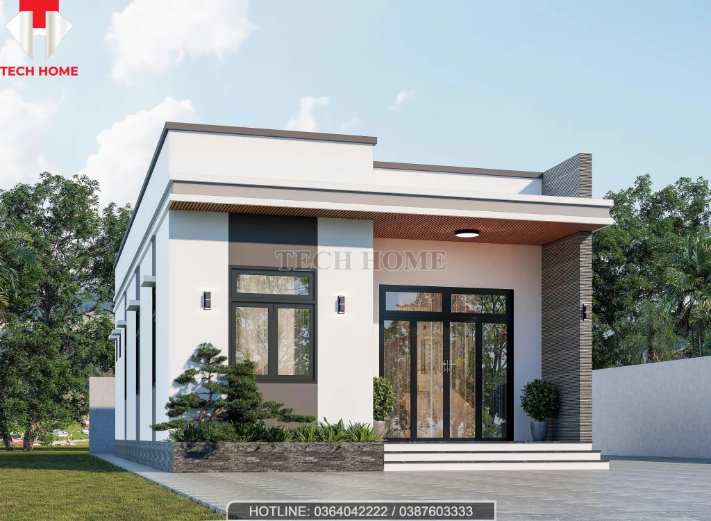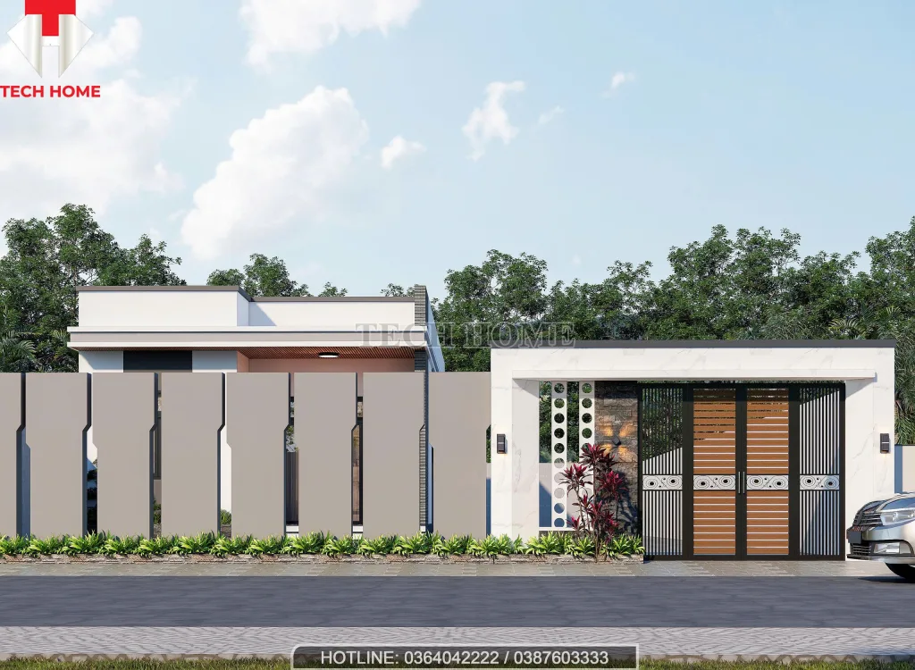Ngôi nhà mái bằng 1 tầng Techhome thiết kế mang phong cách hiện đại với: